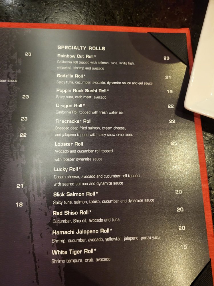 “ We had a latenight dinner here during our stay at The Golden Nugget. We ordered pot stickers, ramen, and the white tiger sushi roll see photos. Everything was really good. I easily made a meal out of the sushi roll, it was huge. Our food was ready pretty quickly, service was good, and the prices werent bad. The menu is not huge but has a little bit of everything. Wed definitely come back here again. ”